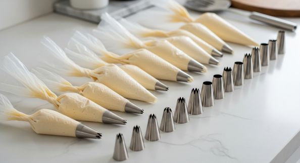 - Garnissage : percez ou fendez chaque choux et garnissez de crème à l’aide d’une poche à douille.